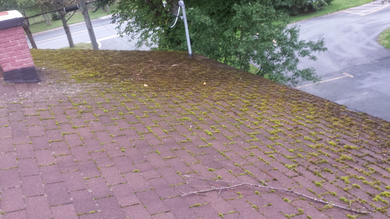 We have noticed an increase in the number of homes with moss acumulating on the rooftop.  So many in the St. John's area that it bears further research and discussion.  Here is an example.